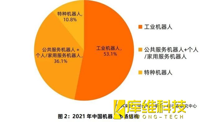 根據(jù)中國(guó)電子學(xué)會(huì)發(fā)布的《中國(guó)機(jī)器人產(chǎn)業(yè)發(fā)展報(bào)告(2021年)》(以下簡(jiǎn)稱《報(bào)告》)顯示,2021年我國(guó)機(jī)器人市場(chǎng)規(guī)模預(yù)計(jì)達(dá)到839億元,其中工業(yè)機(jī)器人市場(chǎng)規(guī)模約為445.7億元,占比為53.1%;服務(wù)機(jī)器人市場(chǎng)規(guī)模約為393.3億元,占比為46.9%。而在服務(wù)機(jī)器人市場(chǎng)中,公共服務(wù)機(jī)器人及個(gè)人/家用服務(wù)機(jī)器人的市場(chǎng)規(guī)模預(yù)計(jì)達(dá)302.6億元,占總市場(chǎng)規(guī)模的36.1%;特種機(jī)器人市場(chǎng)規(guī)模約為90.7億元,占總市場(chǎng)規(guī)模的10.8%。
