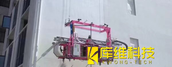 懸掛式布料機器人,這是今年剛在武漢投入使用的新型建筑機器人。它懸掛安裝于住宅造樓機下方,可以實現(xiàn)自主作業(yè)、精準(zhǔn)分區(qū)布料,能提高工作效率15%以上。