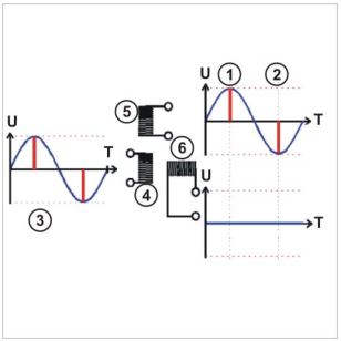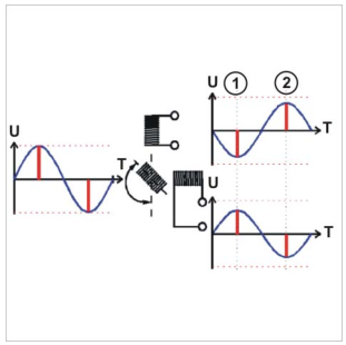 感應引起的電壓在兩個測量點 (1,2)接受探測和評估。