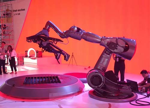 車展產品發布會熱場的標配娛樂項目,擁有完美的全角度虛擬現實模擬飛行體驗。體驗者戴上VR眼鏡,機械臂的底盤可以配上全感裝置集成系統,為體驗者提供了視覺、聽覺、嗅覺、觸覺,配以空中環境模擬系統,其擺脫地球引力身臨其境的自由飛翔快感令人欲罷不能,終身難忘。
