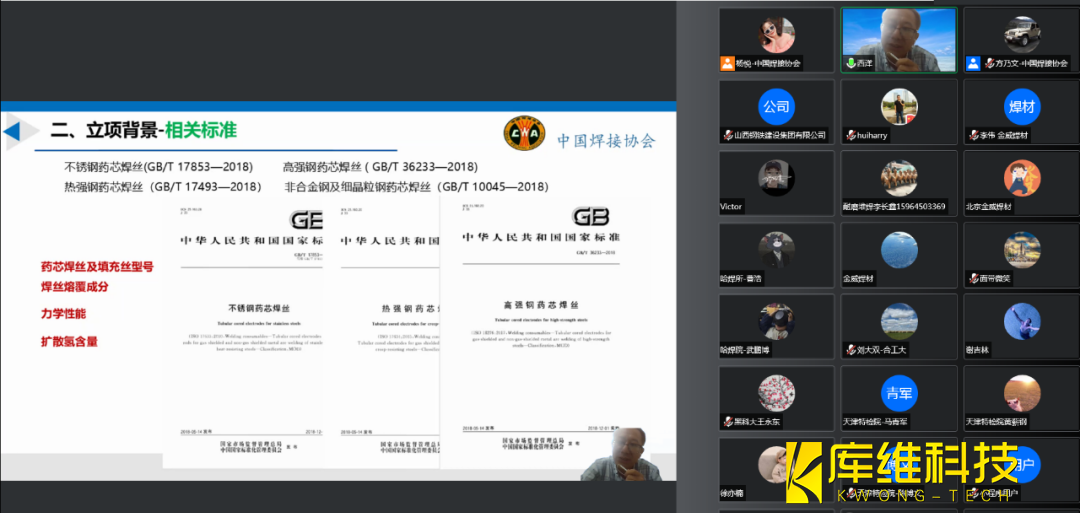 焊接協(xié)會召開了線上團體標準宣貫會,會議由中國http://www.yamin.net.cn/business/content1.html協(xié)會副秘書長方乃文主持。會議邀請了上海電機學(xué)院材料連接與界面工程研究所副所長劉西洋副教授就T/CWAN 0042—2020 《藥芯焊絲制備工藝及質(zhì)量評價規(guī)范》團體標準進行了宣貫解讀。線上共有30多家單位40余位代表參加了宣貫會。