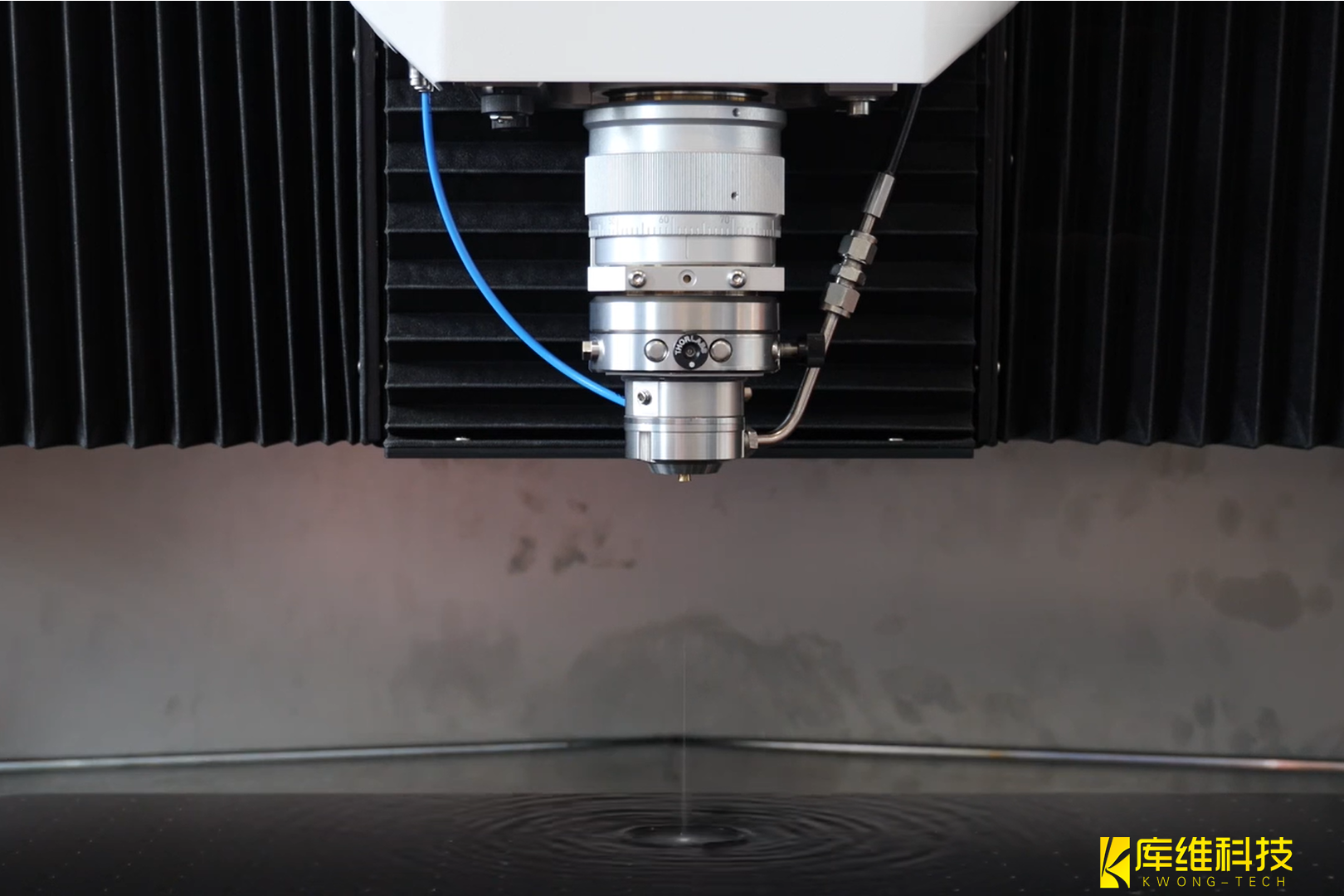 直至1993年,瑞士科研團隊才成功地將其運用于特定材料的處理環節。他們巧妙地利用高壓流水導向聚焦的激光束,使得激光能在水中實現全反射,從而將其能量局限在水束內部,進而實現對待加工物體表面的精準操作。在此過程中,水束不僅承擔了引導激光的任務,同時還扮演了冷卻劑的角色。
